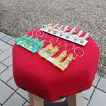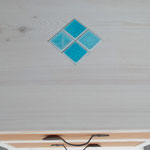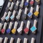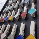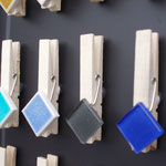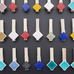 家具に使用する、マリンタイル。 スツールに使用する、畜光タイル。 そしてこの25mm角の貫入タイル。家具に使用するには、ちょっと小ぶりで、行き場を失っていたのですが、ある人のとあるヒントから、この様な物が出来ました。タイルも貫入のガラスタイルや、畜光タイル、おはじき等を使って、さらに磁石を付けて、金属のものにひっつくようにしてみました。近々、現在お付き合いさせていただいてます雑貨店様にて、販売開始の予定です!!