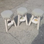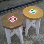 施工事例の方で、番外編として少し載せていますが、当社のもう一つの顔として、このような家具を異業種の仲間たちが集まって、各自のアイデア、技術を持ち寄って、特殊加工したタイルをアクセントに、ちょっと不思議で、ちょっぴりリッチな家具を製作しております。タイルは畜光塗料を一枚一枚に丁寧に手作業で塗装しており、スツール(椅子)も、一脚一脚、手作業で作ってますので、一日に2,3脚が精一杯ですが、既製品ではなく、フルオーダーで承っておりますので、こちらの方も、どうぞ宜しくお願いいたします。