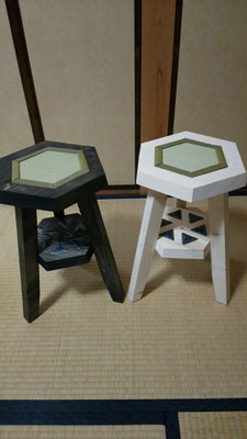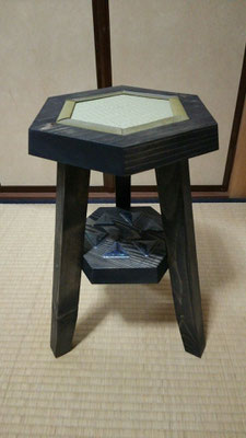 洋風なスツールもお洒落なのですが、この度、和風スツールも販売する事となりました。座面は、木を掘って畳と木面がフラットになっており、座りやすくしてあります。床から座面天場まで、45㎝で作ってありますので、他社商品のテーブル、机等にも合う高さとなっております。また、特注サイズ等も、ご相談いたしますので、重ねてお願いいたします。
