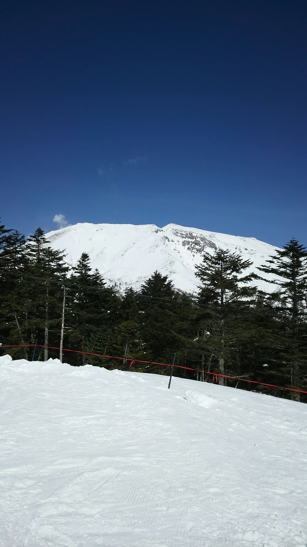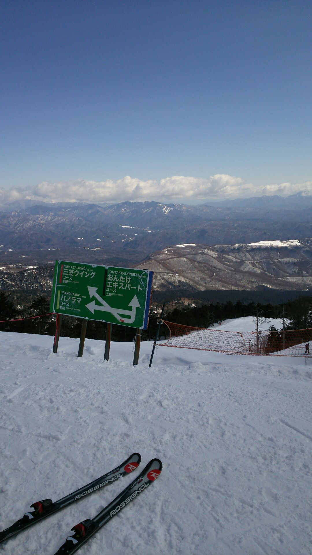 今週の天気の良い平日に、またまたひとり旅ならぬ、ひとりスキーに出かけてきました。今回はよく行く信州木曽、乗鞍エリアの中でも、結構に標高の高い、「おんたけ2240」に行ったのですが、さすがは御嶽山。結構な温かさなのに、雪質も良く、心地よく滑ってきました。3年前の大噴火で、いまだに白い煙を出し続けている山頂の写真が、3枚目に出てきますので、ご覧下さい。今年は降雪日が多く、僕てきには、非常に満足したシーズンだったので、車のスタッドレスタイヤを夏タイヤに戻し、ルーフボックスも外したとたん、いつも一緒にスキーに行く、同業者の友達が、白馬に行きましょう!! なんて言うから、ごめん!車の装備、全部外しちゃった! と、伝えると、レンタカーがあるやん! ですって。まだまだ春スキーまでは楽しめそ~だから、また、スタッドレスタイヤだけでも、もう一度戻そうかなぁ~....。最後に。友達へ。「や○ちゃん、だから一緒に行けばよかったやん」まだまだシーズン終われそうにないかも....。